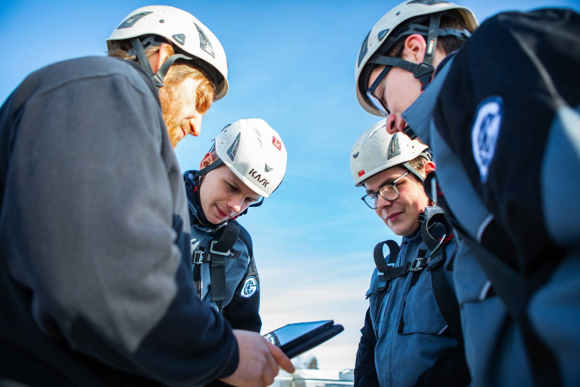 Für die Journalisten ebenso überraschend wie für die Schülerinnen und Schüler: Gerüstbau beginnt nicht auf der Baustelle, sondern im Büro: Dort wird jedes Gerüst mit modernster Technik am Rechner geplant. 3D-Animationen und sogar Drohnen zur Vermessung gehöre heute zum Werkzeug des Gerüstbauers. Die Schülerinnen und Schüler staunen. Aber das war erst der Anfang.