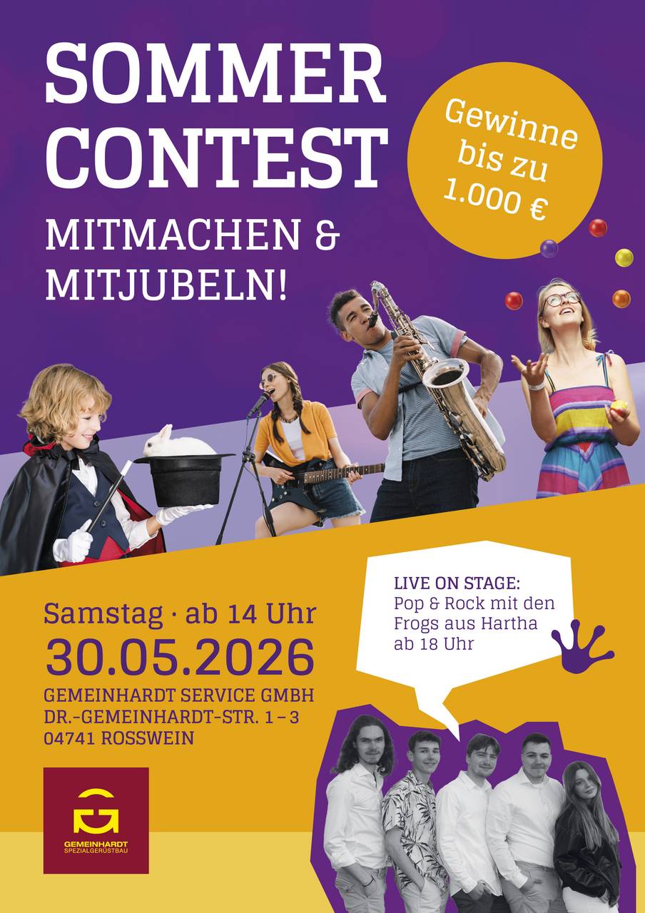 Ihr seid junge Künstler und nicht älter als 25? Dann meldet euch jetzt zum Sommer-Contest an! Sendet bis zum 17.05.2026 eine E-Mail an info@spezialgeruestbau.de oder nutzt unsere Online-Anmeldung.